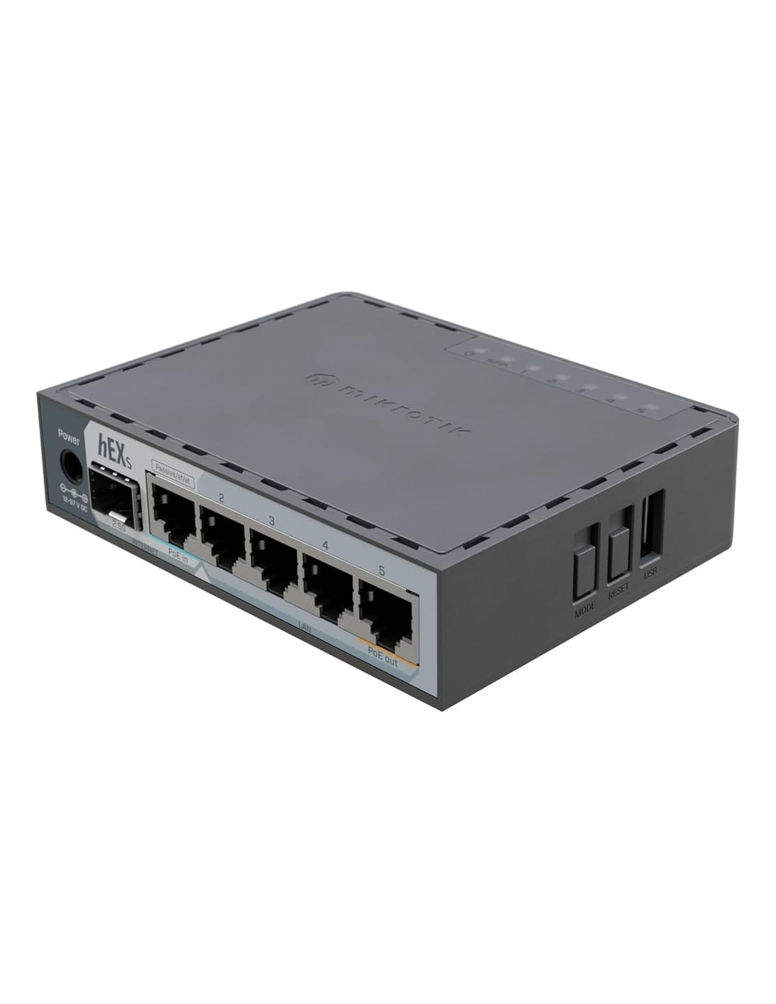 Le MikroTik hEX S (2025) est un routeur Ethernet filaire puissant et polyvalent, parfait pour maisons, bureaux ou petites infrastructures réseau. Il offre une connectivité complète avec 5 ports RJ45 Gigabit pour des connexions LAN rapides et stables, ainsi qu’un port SFP 2,5 G pour des liaisons fibre ou dorsales haut débit.Ce routeur prend en charge l’alimentation PoE‑in (sur le port 1) et PoE‑out (sur le port 5) pour alimenter des périphériques compatibles (caméras, points d’accès, téléphones VoIP), et inclut un port USB 3.0 pour le partage de fichiers ou d’autres extensions.Propulsé par un processeur dual‑core ARM à ~950 MHz, 512 Mo de RAM et 128 Mo de stockage NAND, il fonctionne sous RouterOS v7 (Licence L4) pour des fonctions avancées de routage, VLAN, sécurité, VPN et plus encore.Sa conception compacte et passive (sans ventilateur) le rend silencieux et fiable, idéal pour une installation sur étagère ou en armoire réseau.